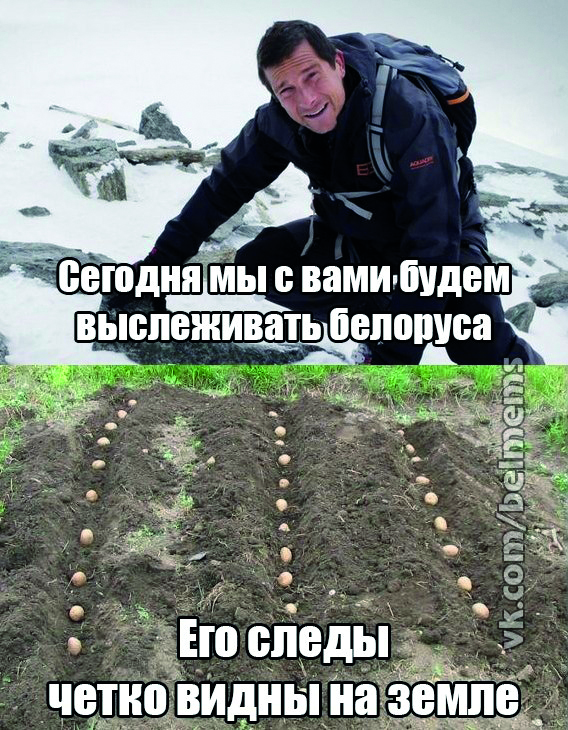 (7) ’Meie teiega üritame täna tabada valgevenelast // Tema jäljed on mulla peal selgelt näha’ (VKontakte: Belorusskije memy, 1. IV 2015)