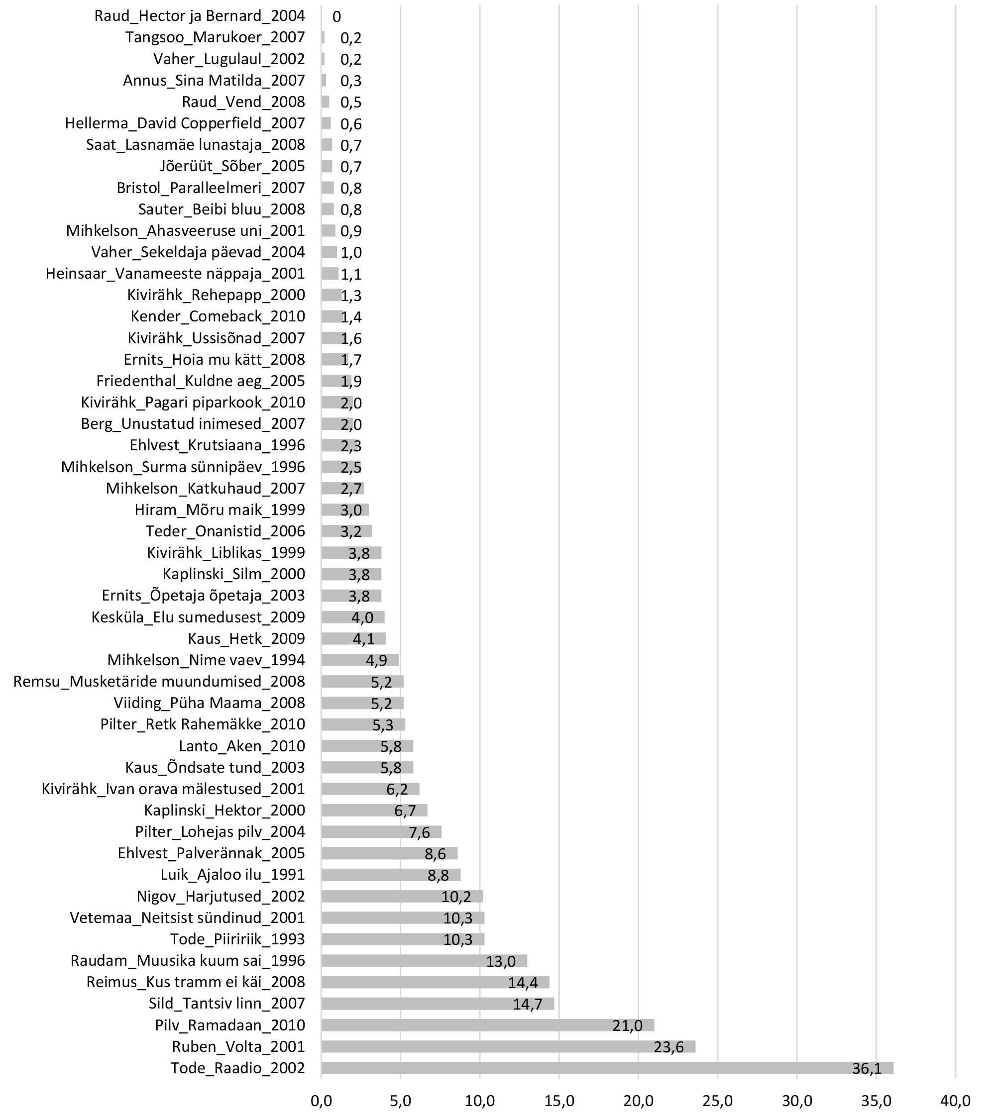 1. Emil Tode, „Raadio” (36,1 avatud tsitaati 10 000 sõna kohta)
