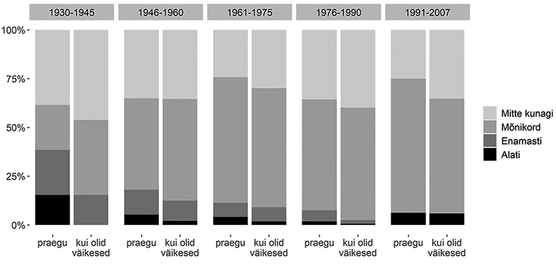(30) Kuigi ma oma lastega eriti ei rääkinud võru/seto keelt, siis nüüd arvan, et järeltulev põlv peaks oskama kõnelda. Nüüd püüan oma lastelastega seda teha. (N1966, mujal Eestis)