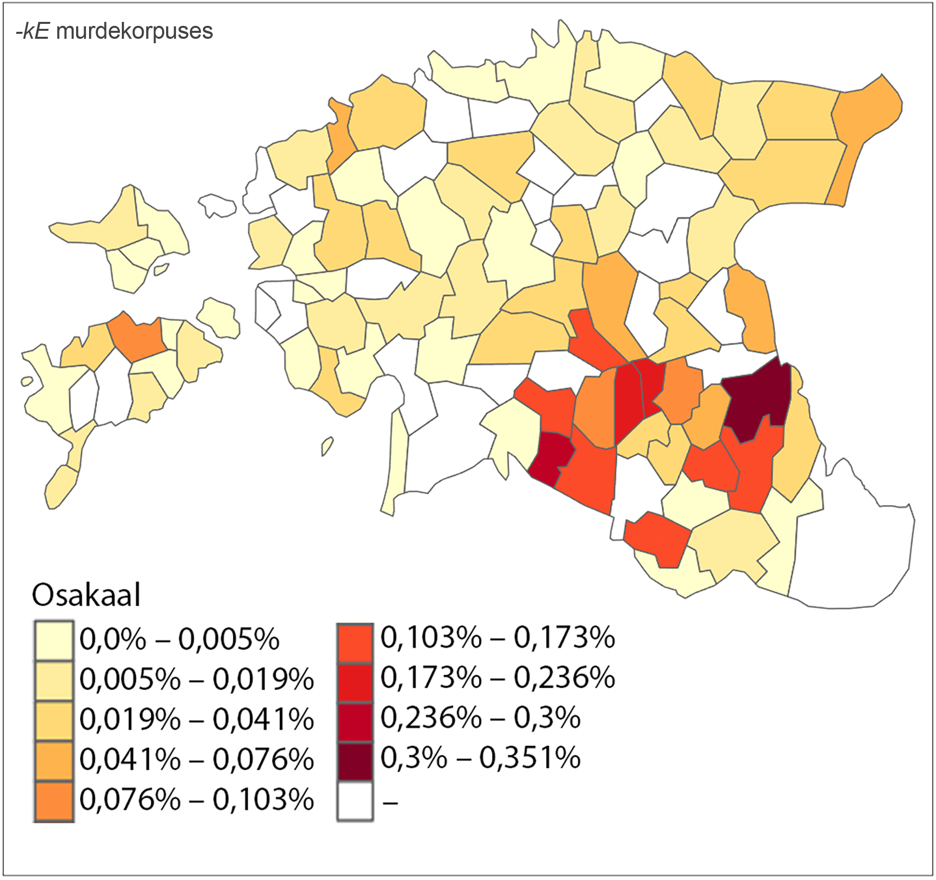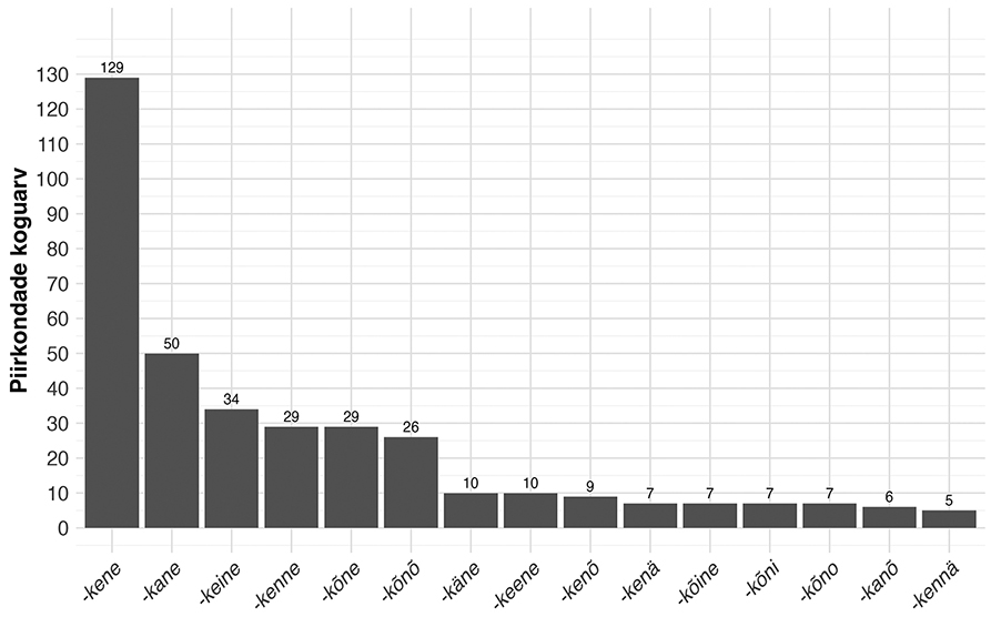 Joonis 2. Sufiksi –kEnE variandid nende levikupiirkondade hulga järgi.