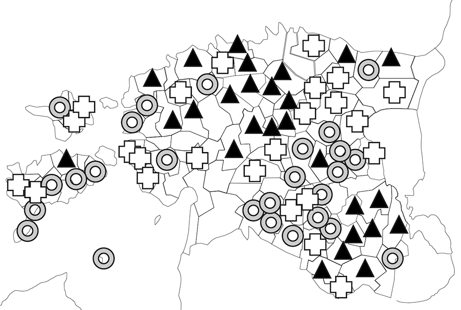 Huvitavamad mustrid tekivad, kui kõrvutada eri ajapunktide keelevalikut kihelkondlikus vaates (vt kaarte 1–4, millel eestikeelse kirikumeetrikaga kihelkondi tähistab kolmnurk  , saksakeelsega sõõr ja segakeelsega rist ).